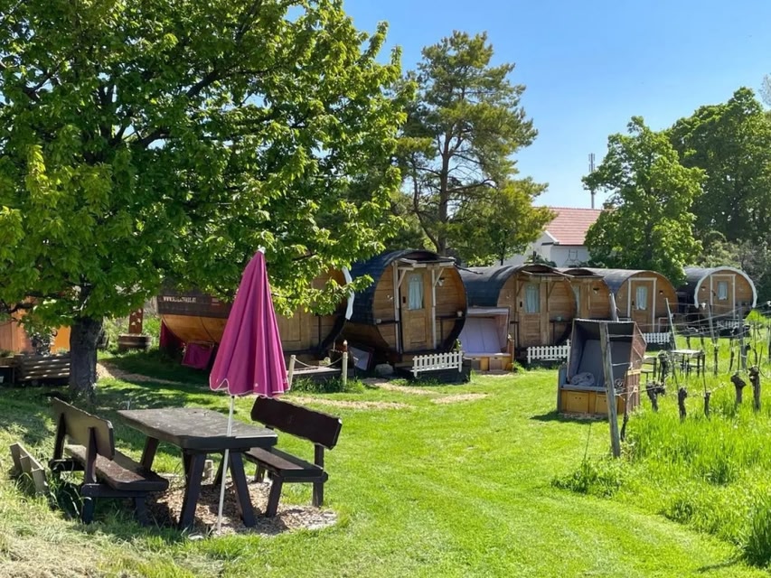 Located just 8.3 km from Spa Garden, Schlaffass - Schlafen im Holzfass Thallern offers accommodation in Gumpoldskirchen with access to a garden, a terrace, as well as bicycle parking.