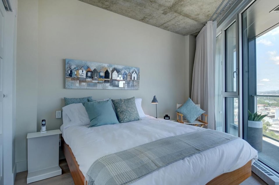Les Immeubles Charlevoix - Le 760-612 位置便利,位於魁北克市中心,設有健身中心。這間空調住宿距離魁北克老城(Vieux Quebec Old Quebec) 800 公尺,為住客提供 WiFi(免費),館內提供私人停車位。 這間公寓設有 2 間臥室、1 間衛浴、寢具、毛巾、有線頻道平面電視、用餐區、設備齊全的廚房,以及享市景的陽台。 櫃台服務人員會講英語和法語,可隨時為住客提供協助。 Les Immeubles Charlevoix - Le 760-612. ..