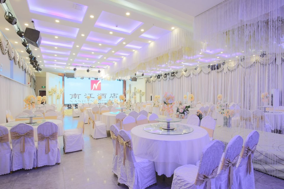 飯店坐落於美麗的雪城牡丹江,距火車站2公里距離機場7公里;北臨牡丹江市中心。南臨牡丹江畔八女投江紀念碑,飯店的營業面積8400平米,設有大型免費停車場,可同時容納800人就餐!南江飯店餐廳可召開各類婚慶活動、公司聚餐、大型集會、舉辦中小型文藝演出、舞會等活動:早餐廳可提供百餘種早餐、錦繡廳可容納300人、陽光大廳可容納500人、內設若干豪華包間。 南江飯店在2019年籌建,飯店內的配套、設施齊全;客房現擁有標間,單人間、商務套間共150餘張床位;房間結構合理,南北通透,光線充足;房內佈置溫馨舒適,整潔大方,設有空調、數字電視、24小時熱水、免費wifi,為您打造家一般的溫馨感覺。讓您賓至如歸!