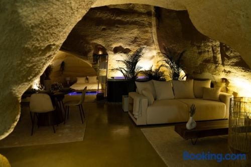 A recently renovated apartment located in Doué-la-Fontaine, La falaise perdue, Suite troglodyte & spa privé features a garden. It is set 20 km from Saumur Train Station and provides a 24-hour front desk.