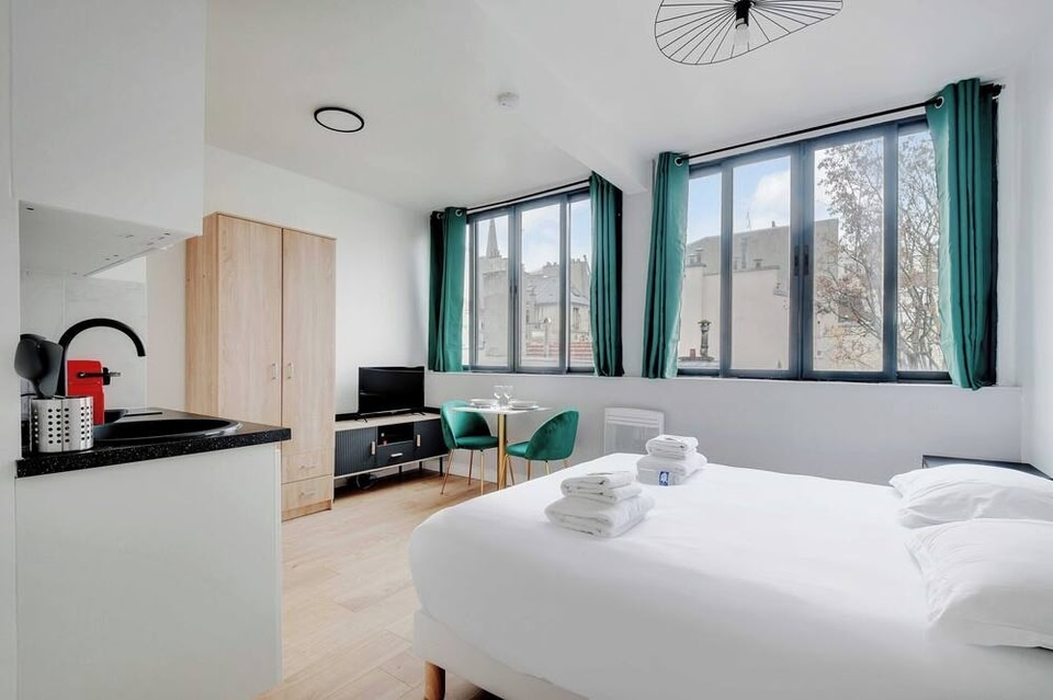 20th Arrondissement, a neighborhood in Paris, is home to this aparthotel. Notre-Dame and Palais Garnier are notable landmarks, and the area's natural beauty can be seen at Canal Saint-Martin and Île Saint-Louis. Check out an event or a game at Stade de France, and consider making time for Luxembourg Gardens, a top attraction not to be missed. Aparthotel in Paris with free parkingFree self parking and free WiFi in public areas are available at this smoke-free aparthotel. The apartment offers a separate bedroom and bed sheets provided. Guest accommodations at this aparthotel feature separate bedrooms.