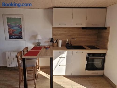 Studio Bellevue appart indépendant rénové 2024 piscine parking proche centre Annecy 位於 Poisy,提供 WiFi(免費),且住宿可享山景,設有季節性室外游泳池和花園。這間公寓設有免費私人停車位。住客可以在附近地區健行、滑雪和浮潛。 這間公寓設有 1 間臥室、1 間衛浴、寢具、毛巾、平面電視、用餐區、設備齊全的簡易廚房,以及享市景的露台。為了讓您更加方便,住宿可提供額外收費的毛巾和寢具。 Studio. ..