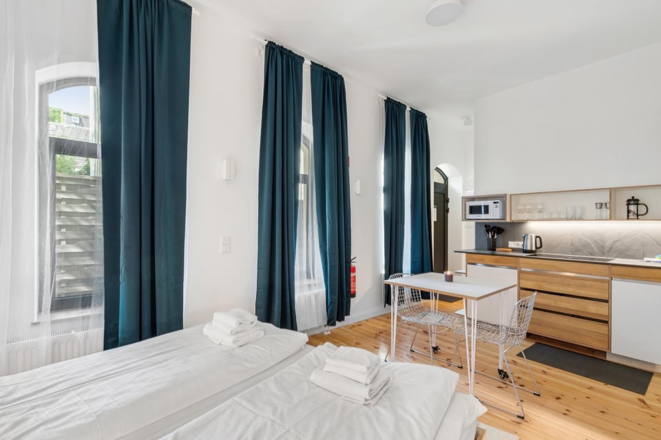 Providing inner courtyard views, a garden, and free Wifi, Madflats Hotel-Apartments S-Bahn Friedenau is located in Berlin, 3.1 miles from Kurfürstendamm and 3.3 miles from Zoologischer Garten Metro Station. The property is around 3.7 miles from Berlin Philharmonic Orchestra, 4.2 miles from Holocaust Memorial, and 4.3 miles from Potsdamer Platz. Guests can access the apartment via private entrance. All units comprise a seating area, a dining area, and a fully equipped kitchen with various cooking facilities, including a dishwasher, a microwave, a toaster, and a fridge. All rooms are fitted with a kettle and a private bathroom, while selected rooms have a patio and some have city views. At the apartment complex, all units are fitted with bed linen and towels. Messe Berlin is 4.5 miles from the apartment, while The Reichstag is 4.5 miles away. Berlin Brandenburg Willy Brandt Airport is 14 miles from the property.