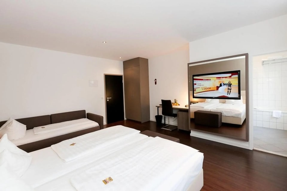 This modern hotel is opposite Frankfurt's main train station. It offers 55 non-smoking rooms, free WiFi, and a 24-hour bar. The Messe exhibition centre is 5 minutes away by underground.