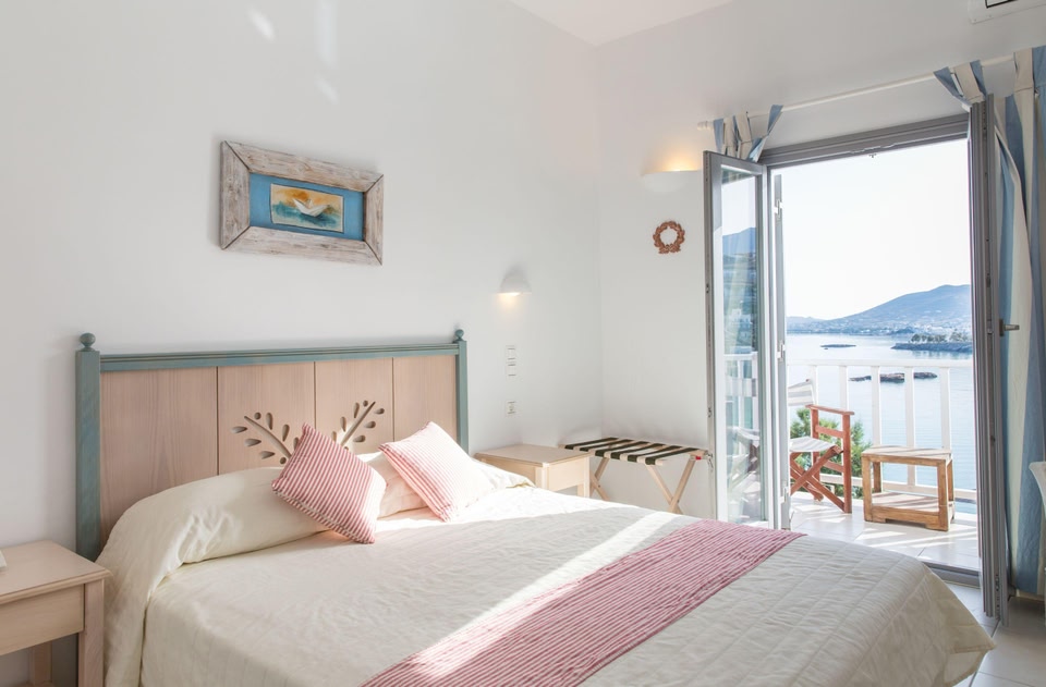 Overlooking magnificent sea views, Paros Bay enjoys direct access to a sandy beach. It boasts a large swimming pool with deck chairs and umbrellas.