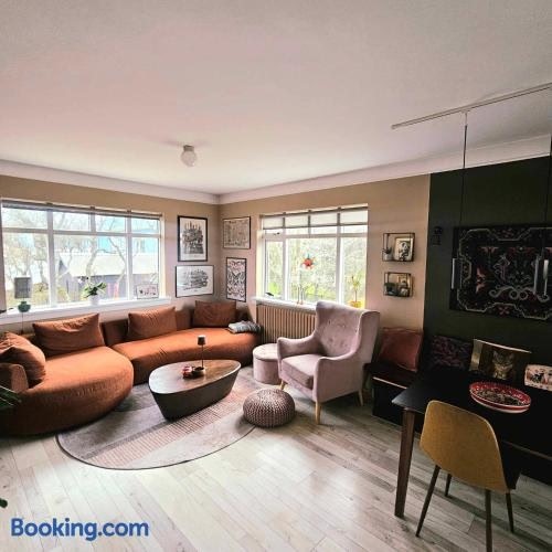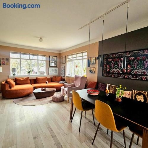 2 bedroom apartment with a loft- close to downtown 位於雷克雅維克,距離太陽航海者(Solfar Sun Voyager)僅 4.5 公里,享有市景,提供 WiFi(免費)和免費私人停車位。這間住宿享有園景,距離卡達之珠 4.5 公里,距離哈爾格林姆教堂(Hallgrímskirkja Church) 4.