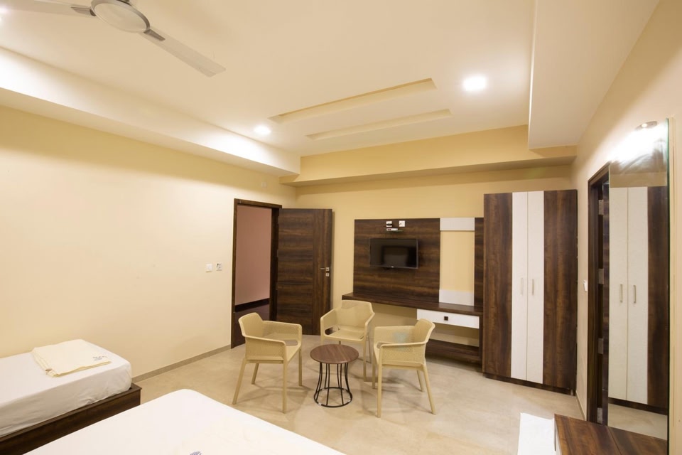 Ponnis Hotel is located in Palani. With a shared lounge, the 3-star hotel has air-conditioned rooms with free WiFi, each with a private bathroom. The accommodation provides room service and a 24-hour front desk for guests.