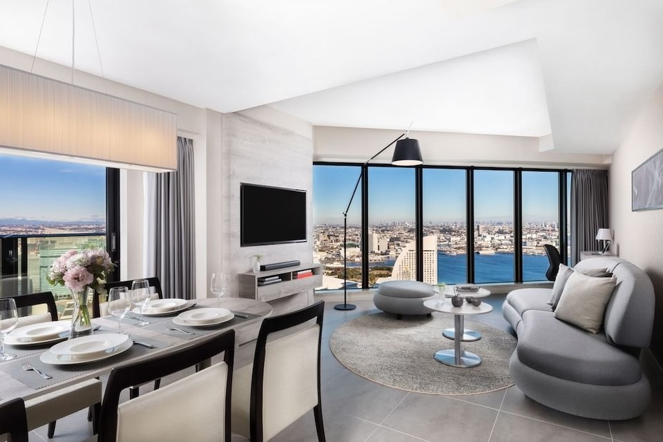 Luxurious Accommodation with Stunning Sea ViewsWell-Fitted Kitchen and Modern AmenitiesExperience the convenience of a well-fitted kitchen equipped with an oven and a microwave in every unit. Enjoy additional amenities such as a safety deposit box, a satellite flat-screen TV, and ironing facilities. Relax in the spacious seating area with a sofa and make use of the desk for any work needs.Relaxation and ConvenienceUnwind in the shared lounge area or take advantage of the fitness centre for a rejuvenating workout. With parking on-site and a lift for easy access, your stay at Oakwood Suites Yokohama promises both relaxation and convenience.Contact us now to book your stay at Oakwood Suites Yokohama and elevate your travel experience!