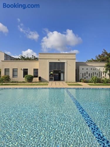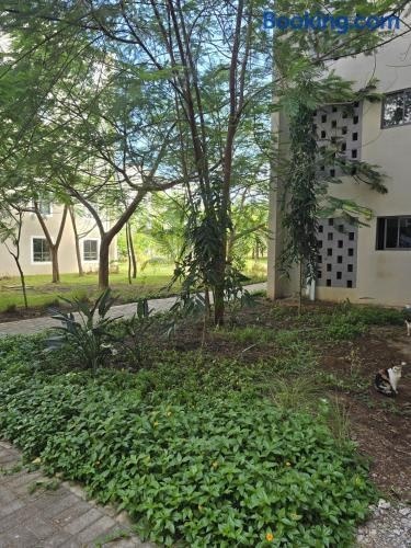 The Vipingo Retreat位于Vipingo,提供花园,享有花园景,距离Haller Park有27公里,距离尼亚利高尔夫球场有30公里。这家住宿距离Jumba la Mtwana有18公里,提供户外游泳池和免费私人停车位。 这家公寓配有2间卧室、起居室、带冰箱和电热水壶的设施齐全的厨房以及1间带坐浴盆和淋浴设施的浴室。这家公寓还配备休息区、洗衣机以及1间带拖鞋的浴室。 这家公寓距离曼姆巴村鳄鱼场有31公里,距离纳亚利Cinamex电影院有33公里。维平戈机场距离住宿有3公里。