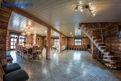 Boasting river views, Brīvdienu māja "Avotiņš" features accommodation with water sports facilities and a terrace, around 49 km from Stacija Ozolsala. The holiday home offers a spa experience, with its sauna, hot tub and hammam.