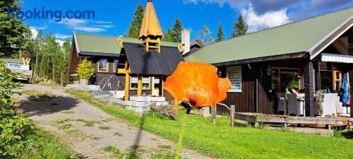 Ønskedrømmen hytteutleie 位在 Brandbu,設有花園、WiFi(免費)、共用廚房和共用休息室。這間公寓設有免費私人停車位。住客可以在附近地區滑雪和玩飛鏢。 這間公寓設有戶外休息區,享有山景,設有 3 間臥室、起居室、平面電視,廚房設備齊全,且附冰箱和洗碗機,以及 1 間附淋浴設施的衛浴。這間公寓提供毛巾和寢具。 Ønskedrømmen hytteutleie 提供陽光露台和烤肉設備。 奧斯陸機場距離住宿 55 公里。