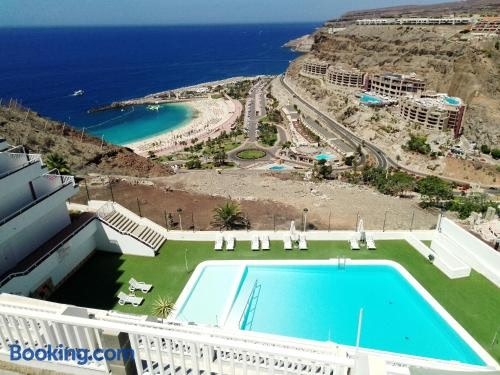Balcón de Amadores - Beach view heeft uitzicht op de zee, en biedt accommodatie met een balkon en een koffiezetapparaat, op 18 minuten lopen van Playa de Amadores. Deze accommodatie met uitzicht op de stad heeft een terras en een zwembad.