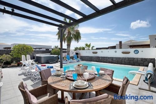 Villa Hibiscus ligt op 2,4 km van Strand van Playa Blanca, en biedt accommodatie in Playa Blanca met toegang tot een hot tub. Deze villa heeft een privézwembad, een tuin, barbecue voorzieningen en gratis WiFi.