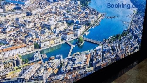 Blue-Lake View 位在日內瓦,位於市中心,靠近科納文火車站(Gare de Cornavin)和日內瓦大噴泉(Jet d'Eau),提供WiFi(免費)、空調,還有烤箱和咖啡機等家電。這間住宿享有市景和山景,距離聖彼得大教堂(St. Pierre Cathedral)不到 1 公里。 這間公寓設有 2 間臥室、附冰箱和洗碗機的廚房、平面電視、座位區,以及 1 間附沖洗座的衛浴。這間公寓提供毛 巾和寢具。 Blue-Lake View 距離聯合國日內瓦總部 2.