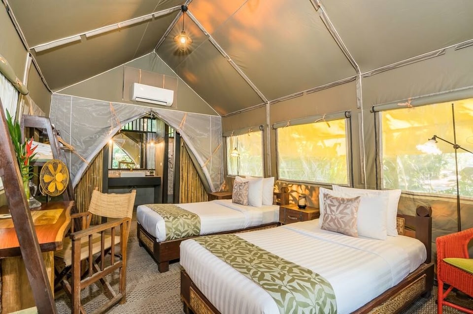 This unique, nature retreat overlooks the historic River Kwai and Hintok Mountain. Nestled in a Hellfire Pass clearing, Hintok River Camp offers accommodation in luxurious canvas tents with free WiFi.