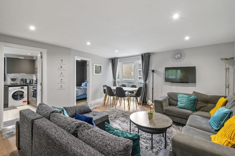 Canary Wharf, a neighborhood in London, is home to this apartment. The area's natural beauty can be seen at Thames River and Russell Square, while O2 Arena and The British Museum are cultural highlights. Check out an event or a game at ExCeL Exhibition Centre, and consider making time for London Eye, a top attraction not to be missed. Located in London, this welcoming apartment lets you experience it all. You'll easily make the 9-minute drive to Tower of London or the 10-minute drive to Tower Bridge. Check out other neighborhoods and see more of London by hopping on a metro at either Crossharbour DLR Station, a short 11-minute walk away, or South Quay DLR Station, 13 minutes away. The kitchen is equipped with an oven, a stovetop, and a refrigerator, as well as an electric kettle, a microwave, and a toaster. You can also use the deep soaking bathtub, plus other bathroom amenities like towels and a hair dryer. And you won't have to pack extra clothes, because you'll also have a dryer. Other amenities at this 3-bedroom, 2-bathroom rental include bed sheets, an ironing board, and heating.
