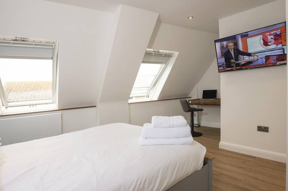 Swindon is home to this apartment. The area's natural beauty can be seen at Thames River and North Wessex Downs, while Swindon Arts Centre and Wyvern Theatre are cultural highlights. Heelis and Museum of the Great Western Railway are also worth visiting. Located in Swindon, this 2-bedroom, 1-bathroom apartment lets you experience it all. Fans of nature and the outdoors will love being 4 minutes by car from Coate Water Country Park and 6 minutes from Stratton St Margaret Parish Grounds. There's convenient nearby parking, so you can leave your vehicle behind and let your feet make short work of the 4-minute walk to Swindon Arts Centre or the 13-minute walk to Wyvern Theatre. While you're here, you can enjoy all the comforts of home and more, including a stovetop, free WiFi, and an elevator.