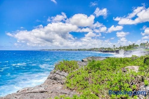 Hale Kai is a beachfront property located in Keaau, 17 km from Lava Tree State Park and 21 km from Lava Tree State Monument.