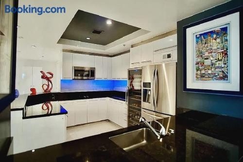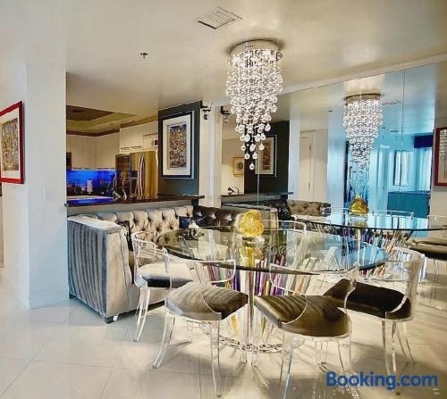 Offering free WiFi and sea views, High-Rise Two-Bedroom Condo with Panoramic City Views is an accommodation located in the centre of Las Vegas, just less than 1 km from Colosseum At Caesars Palace and a 17-minute walk from Bellagio Fountains.