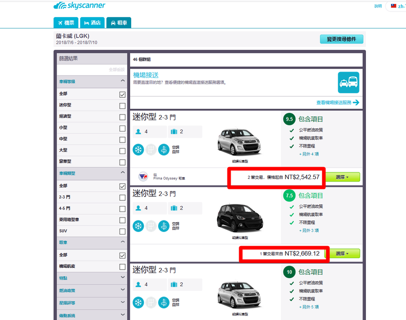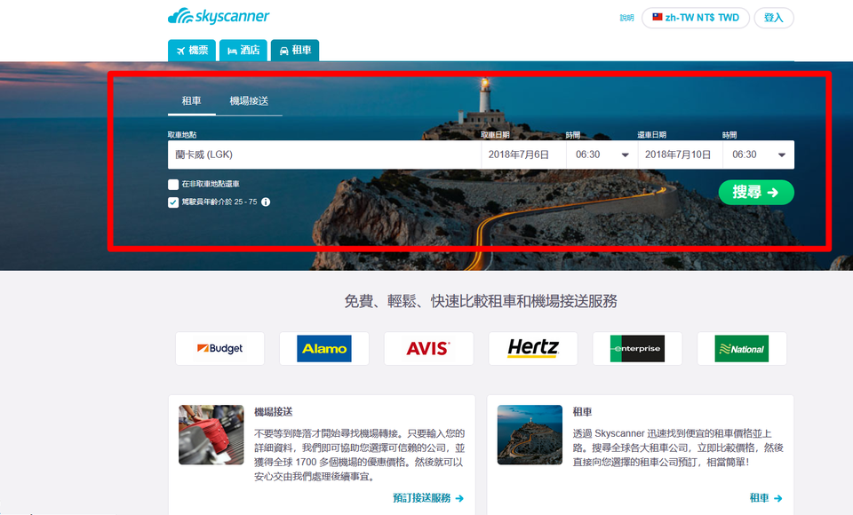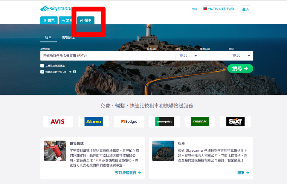 【Skyscanner網路租車】