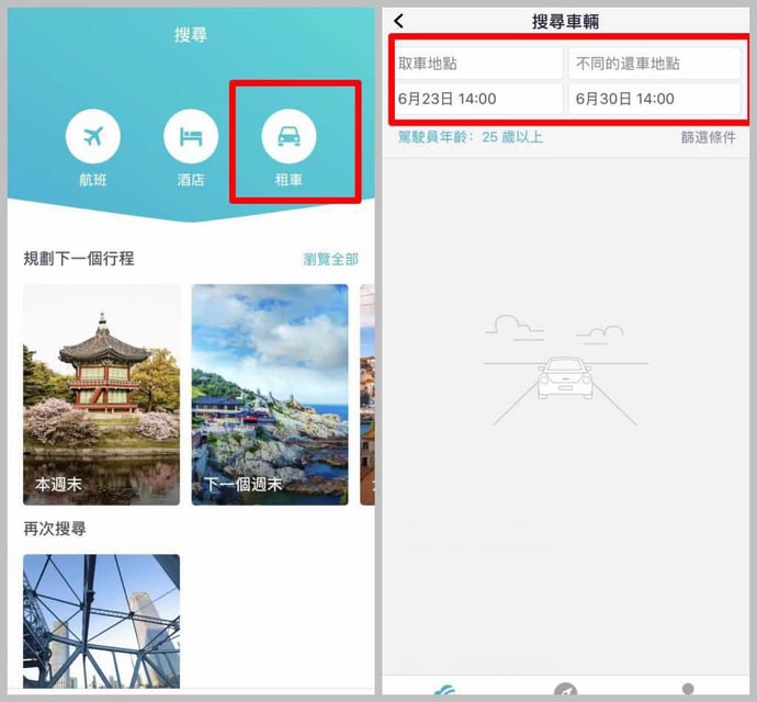 立即搜索目的地機票,開啟一段自駕旅行吧!【Skyscanner手機APP租車】