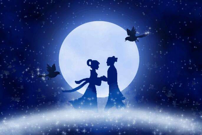 農曆七月初七是七夕節,又稱為情人節。相傳牛郎父母早早就去世了,他常常受到哥嫂的虐待,只有一頭老牛相伴。牛郎偶遇織女後便一見鐘情,於是老牛給他出計謀,娶織女做妻子。有一天,美麗的仙女們在銀河沐浴、嬉戲。藏在蘆葦中的牛郎突然跑出來拿走了織女的衣服。其他仙女急忙上岸穿好衣服飛走了,只剩下織女。在牛郎的懇求下,織女答應做他的妻子。婚後,牛郎織女男耕女織,相親相愛,生活得十分幸福美滿。織女還給牛郎生了一個兒子和一個女兒。後來,老牛要死去的時候,叮囑牛郎要把它的皮留下來,到急難時披上以求幫助。老牛死後,夫妻倆忍痛剝下牛皮,把牛埋在山坡上。